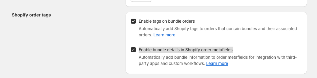 Enabling bundle details in Shopify order metafields
