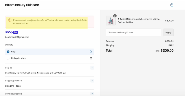 The ultimate solution for them is to update the Shop app to the latest version, but in the meantime, to prevent any issues with orders on your side, we've included a checkout rule so you can manually create and enable. This rule will block the purchase at checkout of any bundle with no selections.