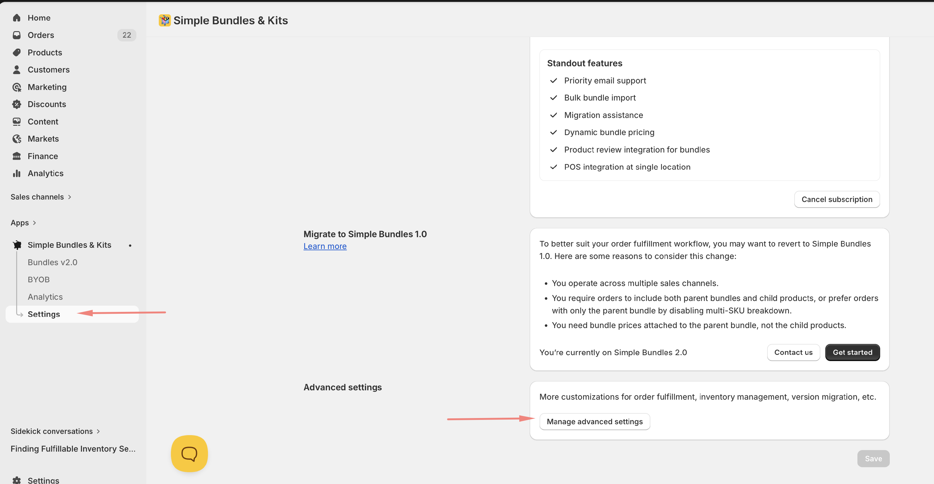 - Go to the Simple Bundles app Settings>Advanced Settings
