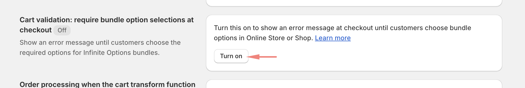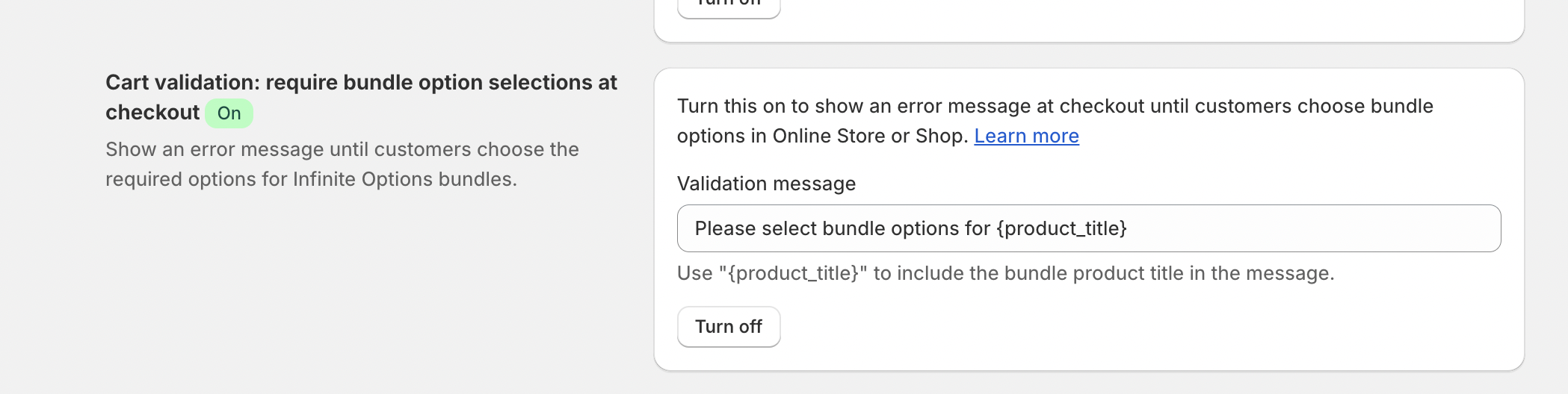 - From the dropdown menu, select Infinite Options bundle cart validation.