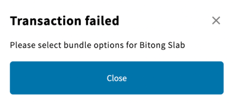 - Example warning message displayed in the cart when some bundle options are missing.