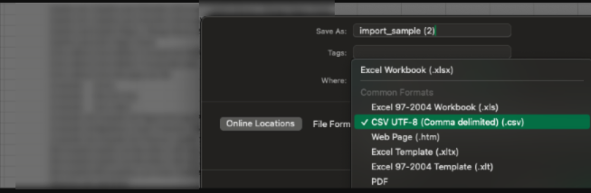 - Under Save as type, select CSV UTF-8 (Comma delimited) (*.csv).