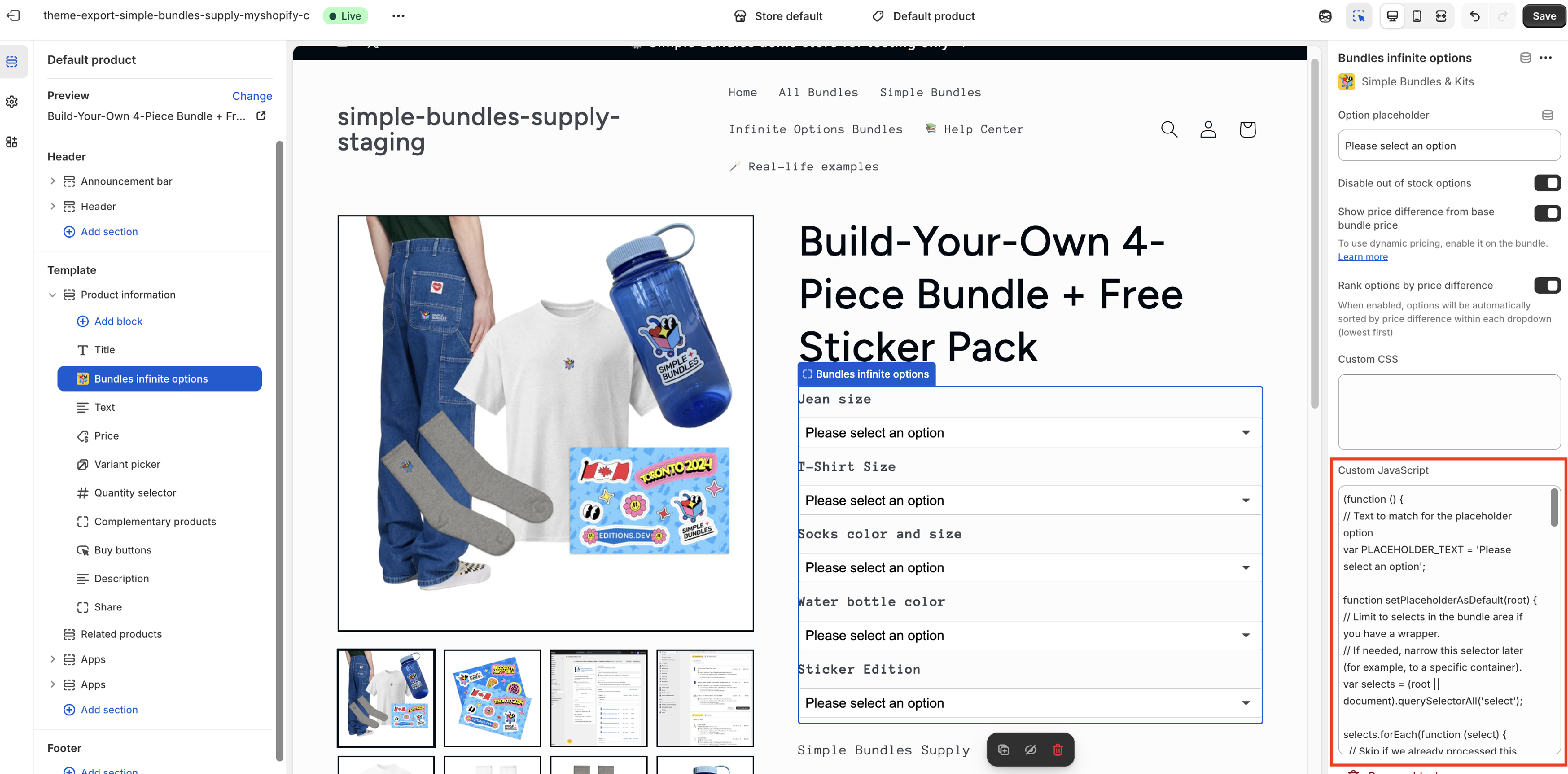 This guide will walk you through updating your Infinite options bundle dropdowns to default to a "Please select an option" placeholder, rather than pre-selecting the first item. This setup helps improve customer experience and can reduce incorrect orders.