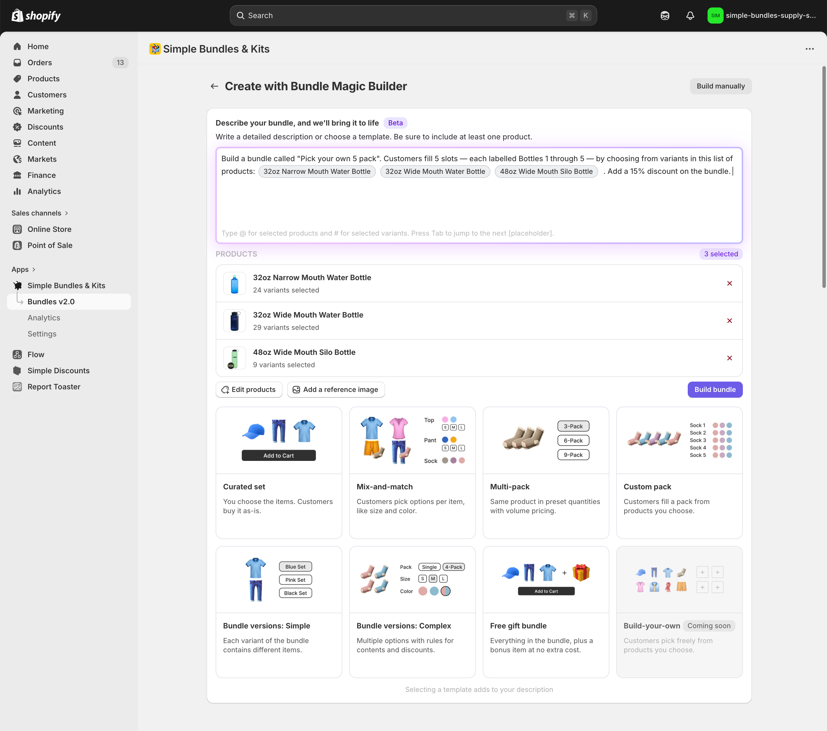To access Bundle Magic Builder, click “Build bundle” on your Dashboard or in the Bundles tab, then select “Build with Bundle Magic.”