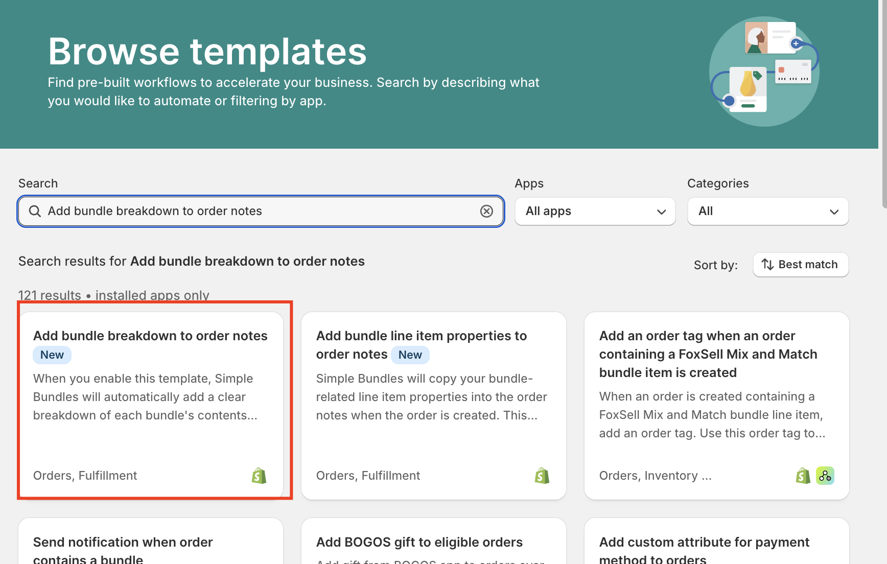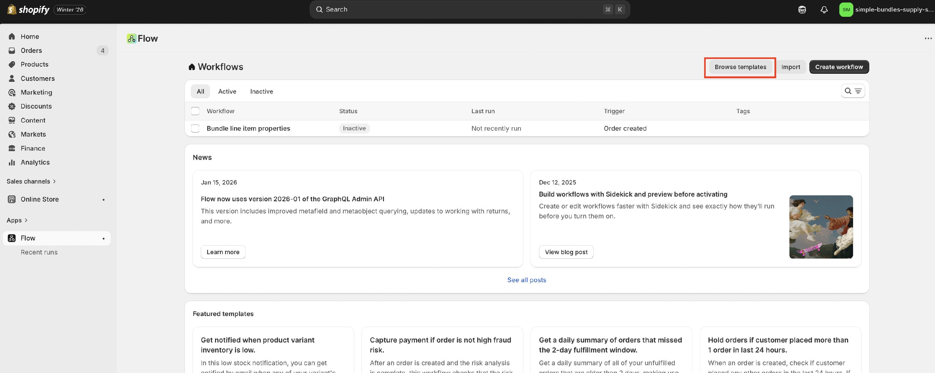 - From the Flow dashboard, click Browse templates and look for "Add bundle breakdown to order notes."