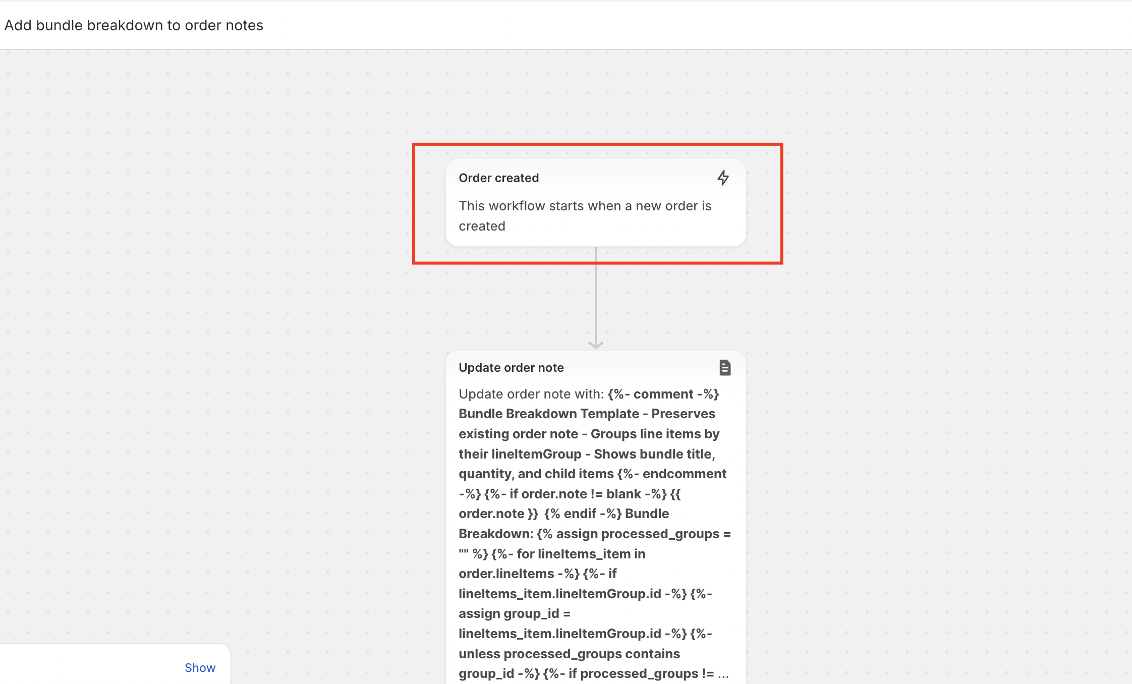 How to add bundle breakdown to order notes using Shopify Flow