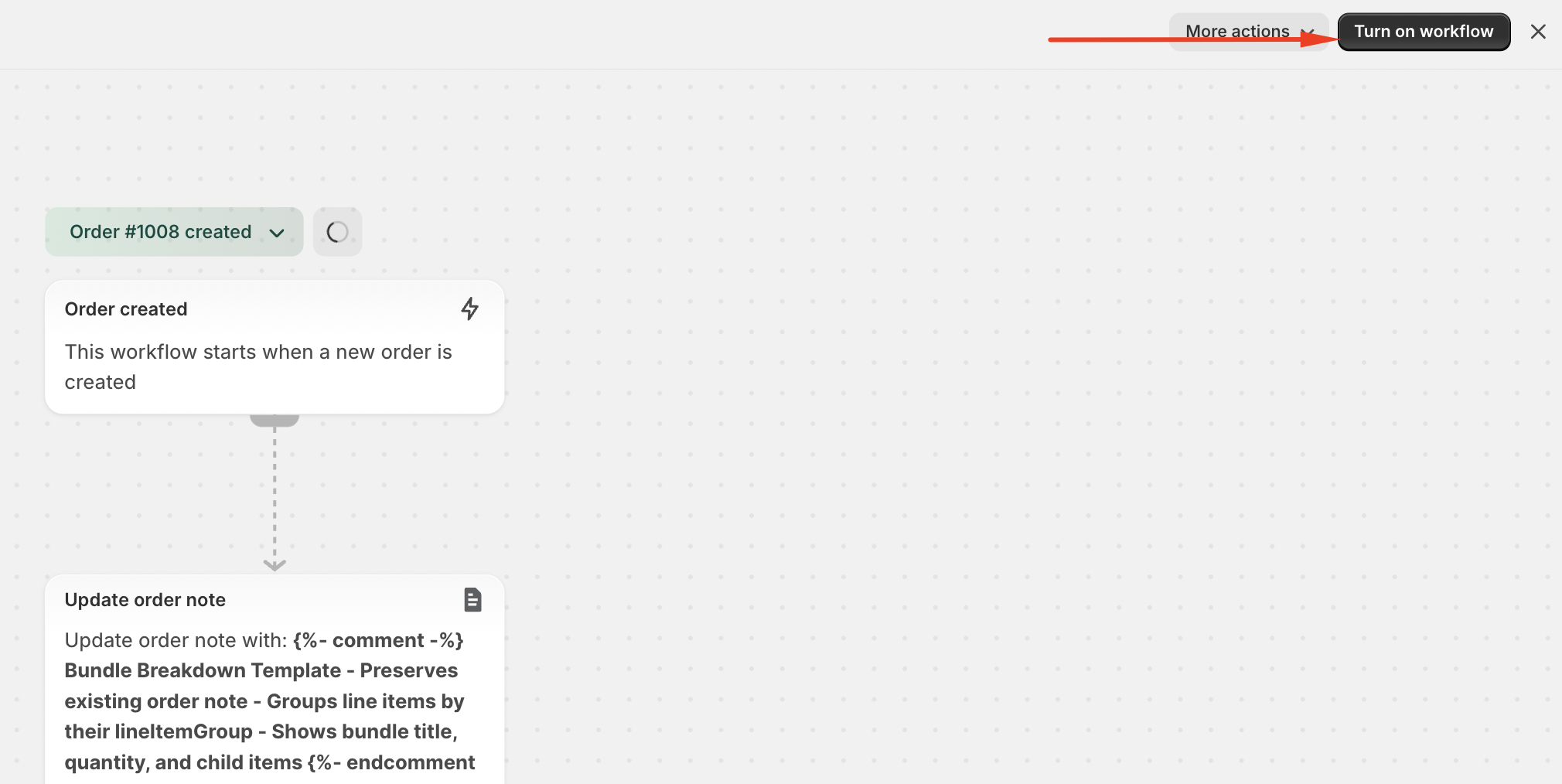 When you want the bundle breakdown to be clearly visible at a glance, this workflow automatically adds a detailed list of each bundle’s contents to the order notes as soon as the order is created. This is especially helpful for packing teams who need item-level details without relying on Shopify packing slips, and since order notes usually flow into other integrations like ShipStation, it helps streamline fulfillment across your tools.