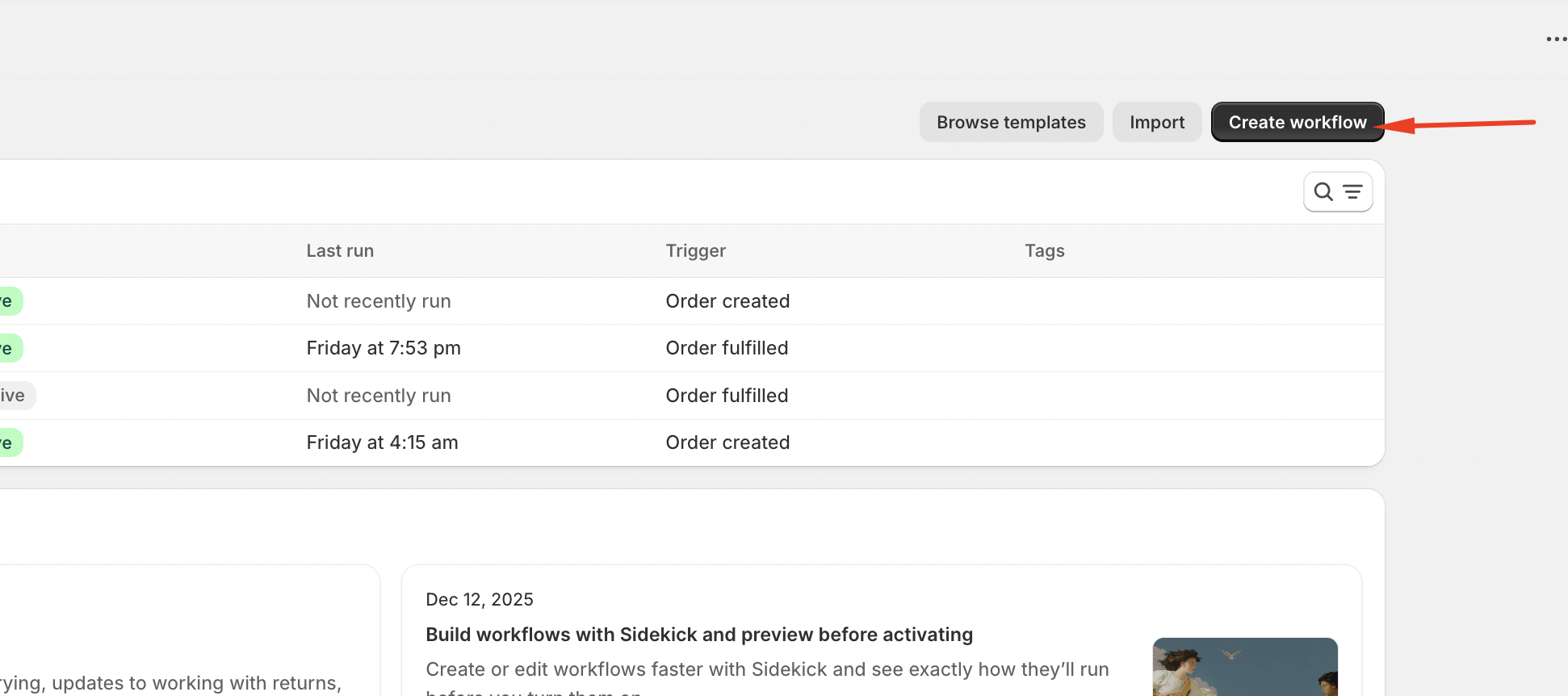 - From the Shopify Flow dashboard, click Create workflow.
