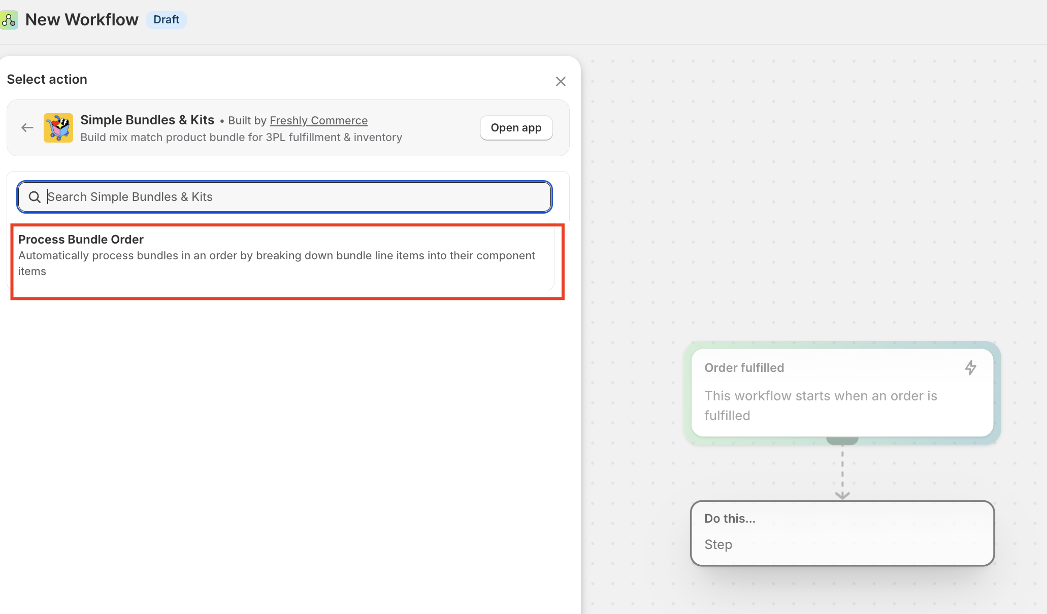 - After creating a trigger, click on Actions and select the Simple Bundles & Kits app
